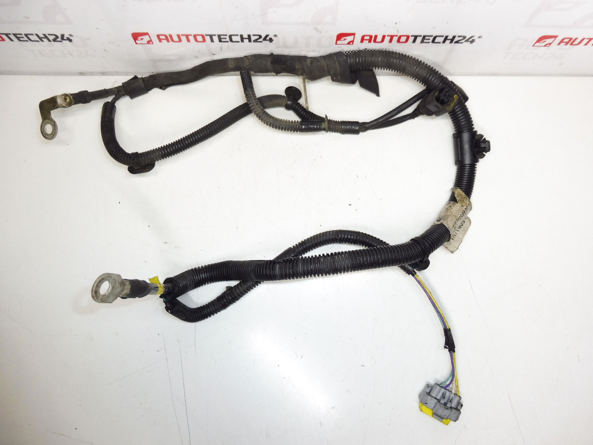 Chicote de cabos plus original (chicote positivo) para motores PSA 2.0 HDi. Esta é uma peça de desmontagem OEM, projetada para transferir energia da bateria para o motor de partida, alternador e caixa de fusíveis no compartimento do motor. Substituição ideal para problemas de partida, quedas de tensão ou fiação original danificada/corroída.