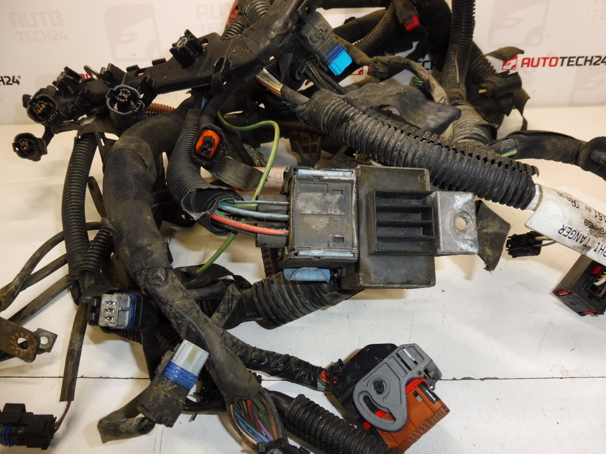 Conjunto de cabos do motor principal original para motores PSA 1.6 HDI (66 kW). É uma fiação OEM retirada do Citroën Berlingo 2007, adequada como substituição em caso de danos ao cabeamento original, conectores ou fios interrompidos. Principais números de peça: 9664716180 e 6569.PZ (6569PZ).